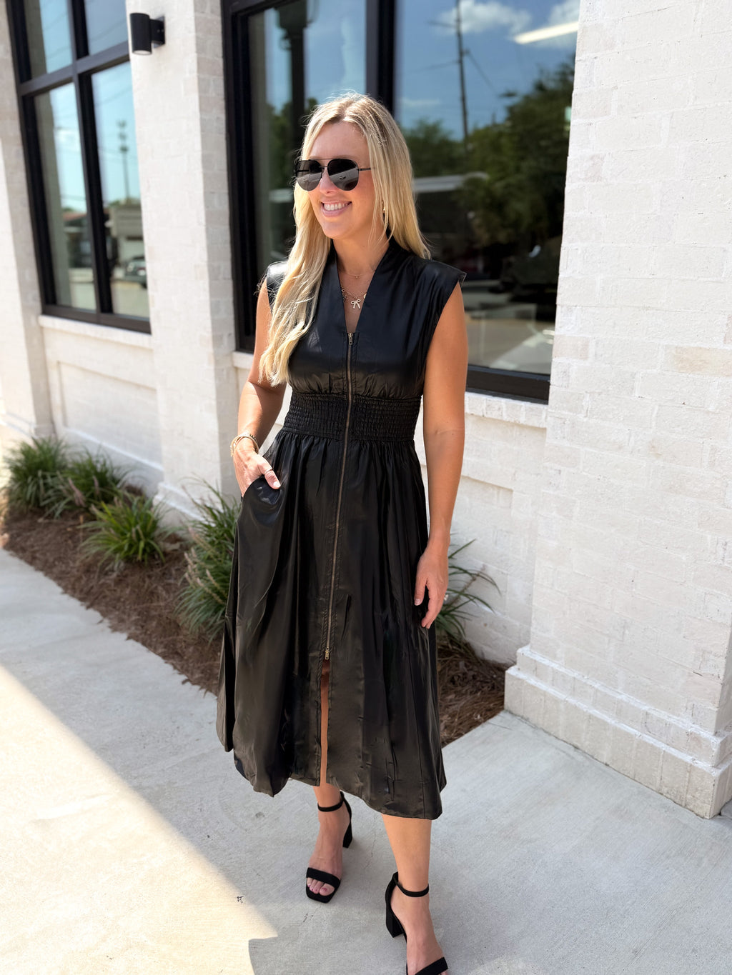 Get The Look Black Leather Midi Dress